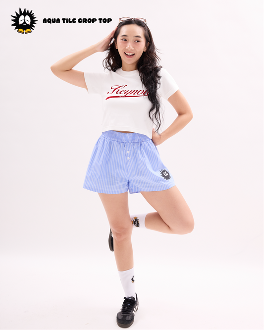 KEYNOTE | Aqua Title Crop Top White