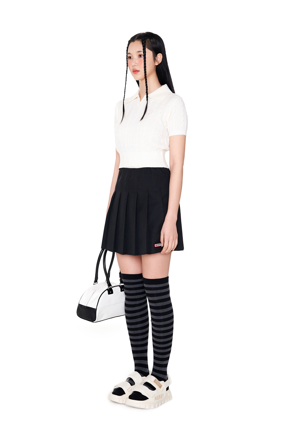 It is designed with a luxurious point with the wappen logo and bold pleats all over the skirt for easy styling.